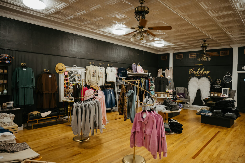 Custom embroidery and screen printing and clothing boutique.